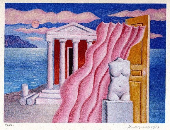 "Archaeological landscape with statues"-Collected lithograph, numbered and signed by Sarantis Karavouzis. Comes with a certificate of authenticity. Year of Engraving / Printing: 1993 Copies: 50 Paper dimensions: 30 x 26,5 cm. Plate dimensions: 18 x 15 cm.