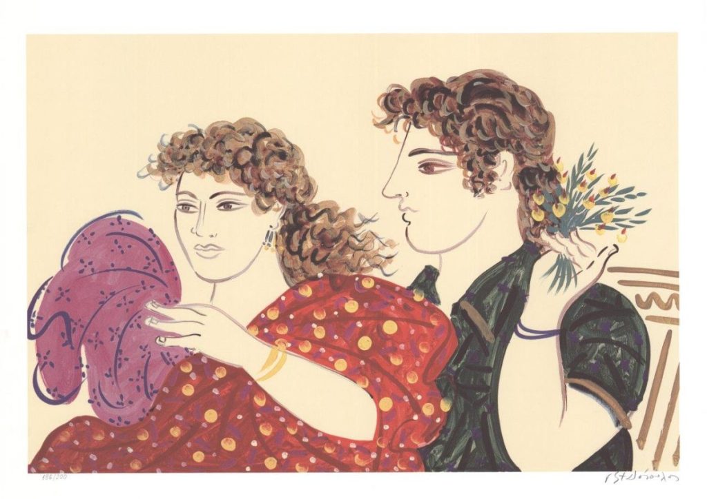 “Νεαρό ζευγάρι” – Συλλεκτική μεταξοτυπία υπογεγραμμένη και αριθμημένη από τον Γιώργο Σταθόπουλο.